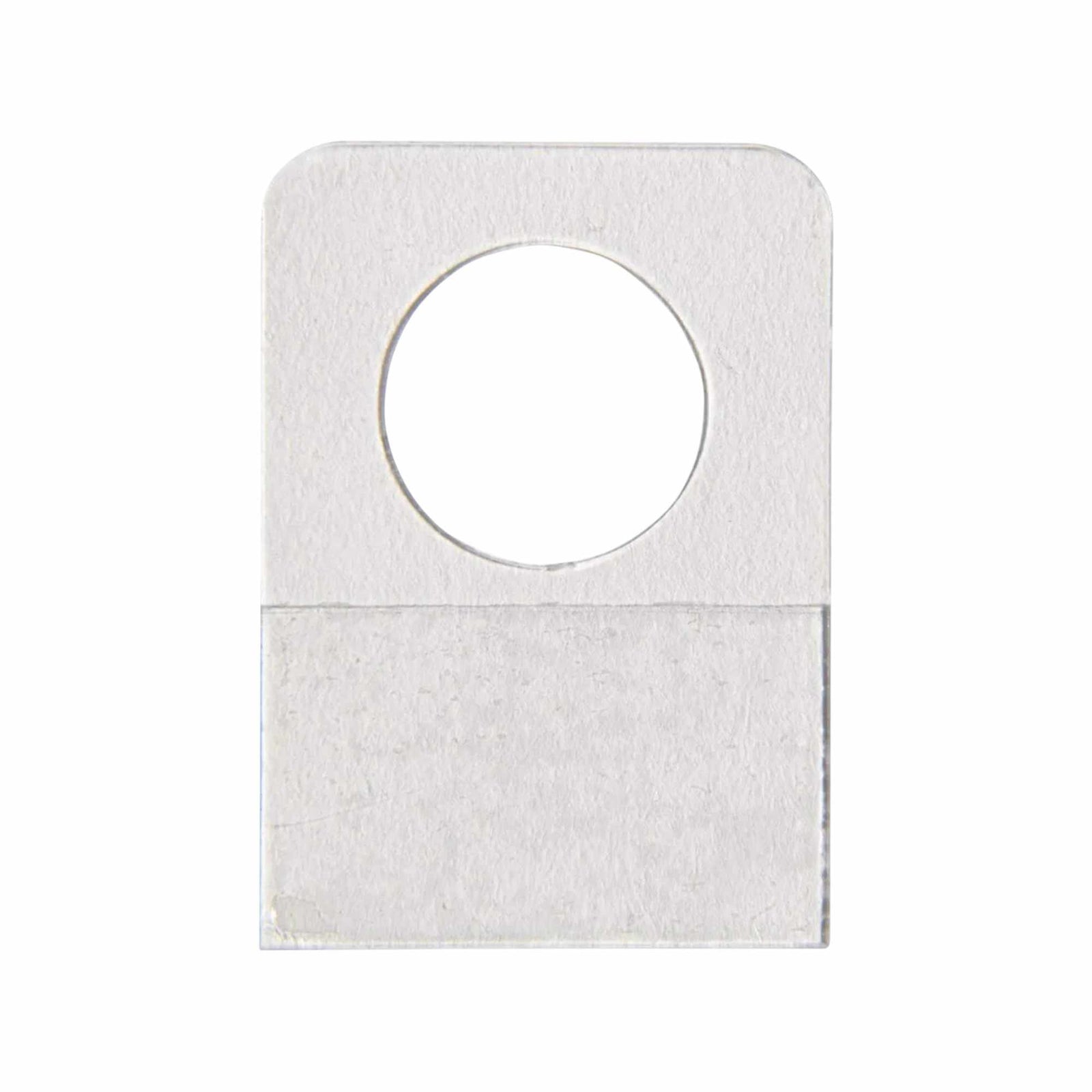 La percha adhesiva chica Exhivit E-64 es una solución práctica para exhibir productos que no cuentan con colgador integrado. Su diseño con orificio redondo permite colocarla fácilmente en tiras de impulso, ganchos plásticos o metálicos, optimizando la presentación de los artículos en el punto de venta.